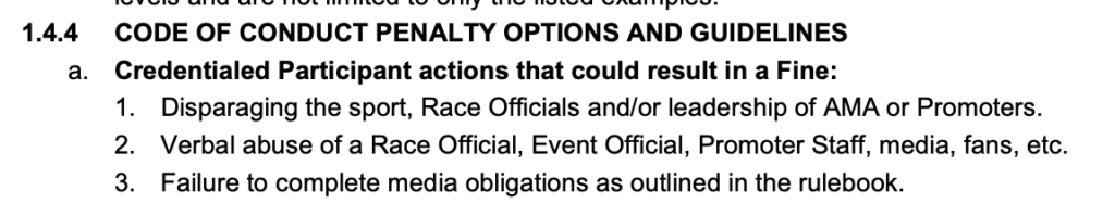 Quien no se mantuvo al margen fue la AMA que hizo un llamado de atención al equipo y al piloto.