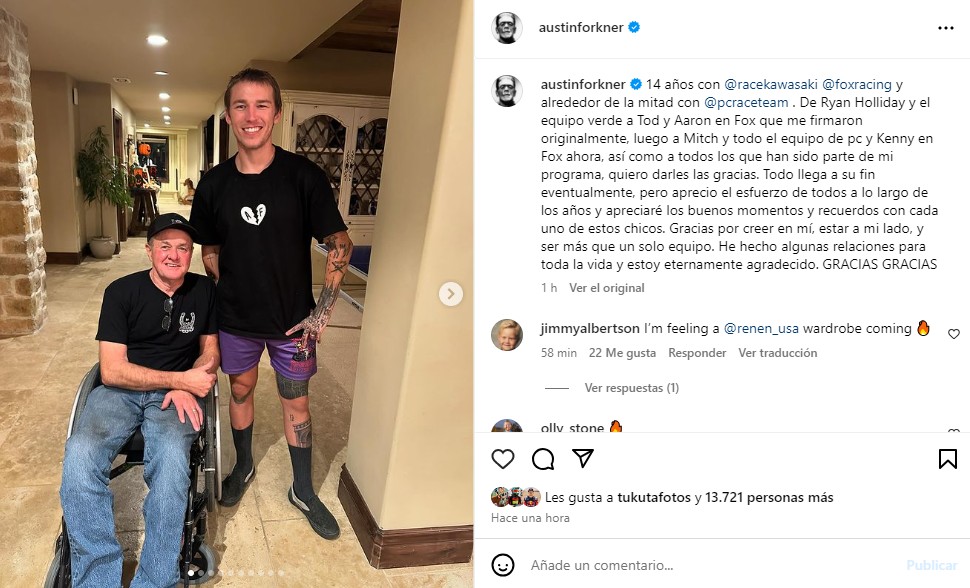 14 años con @racekawasaki @foxracing y alrededor de la mitad con @pcraceteam . De Ryan Holliday y el equipo verde a Tod y Aaron en Fox que me firmaron originalmente, luego a Mitch y todo el equipo de pc y Kenny en Fox ahora, así como a todos los que han sido parte de mi programa, quiero darles las gracias. Todo llega a su fin eventualmente, pero aprecio el esfuerzo de todos a lo largo de los años y apreciaré los buenos momentos y recuerdos con cada uno de estos chicos. Gracias por creer en mí, estar a mi lado, y ser más que un solo equipo. He hecho algunas relaciones para toda la vida y estoy eternamente agradecido. GRACIAS GRACIAS2 horasVer el original