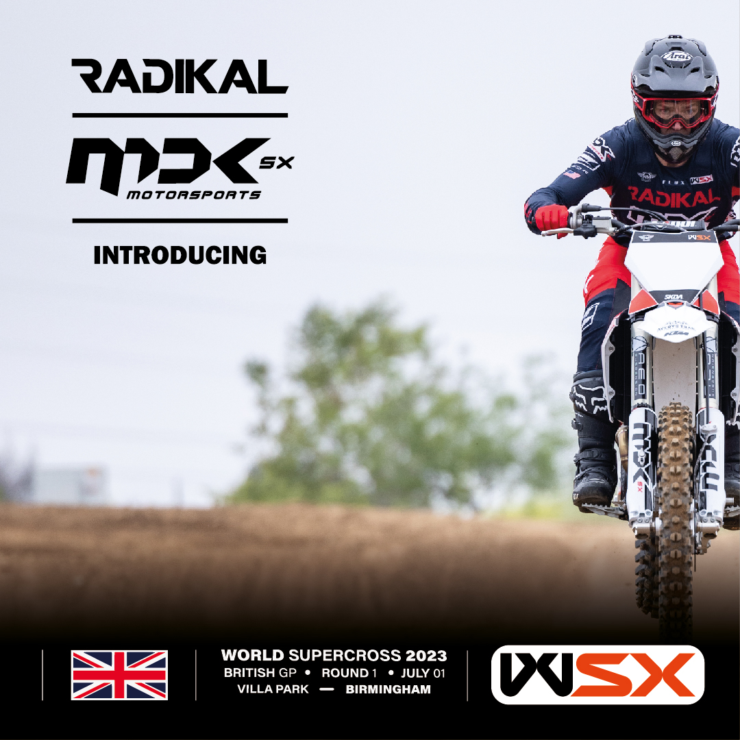 Radikal Racing anuncia su participación en el World Supercross como sponsor oficial del Team MDK MOTORSPORT SX y sus pilotos Justin Bogle, Anthony Rodriguez, Cade Clason y Max Miller.
