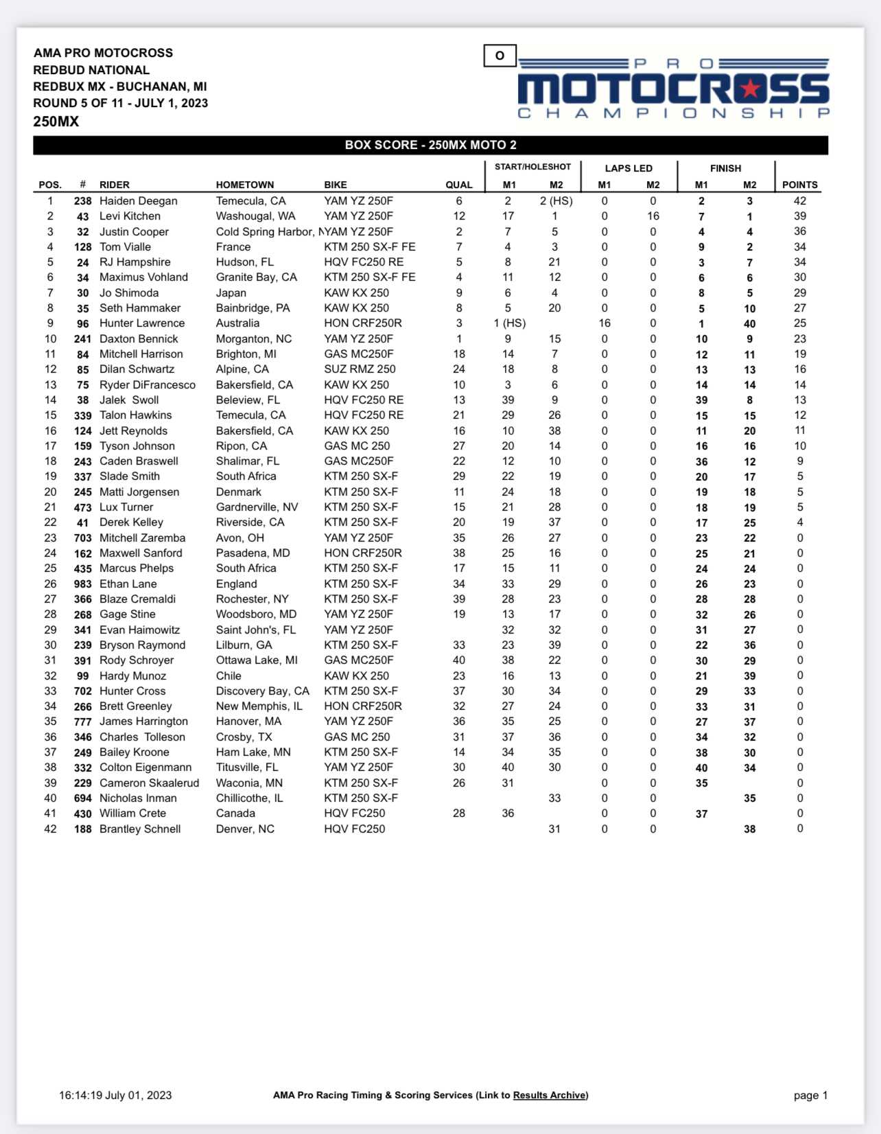 PROMOTOCROSS 2023: HIGHLIGHTS Y RESULTADOS ROUND 5 – RED BUD.